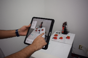 An AR‐enhanced human–robot interaction framework on a touchscreen tablet that uses a virtual arrow to convey and visualize users’ force intentions (location, direction, and magnitude) to a robot manipulator.
